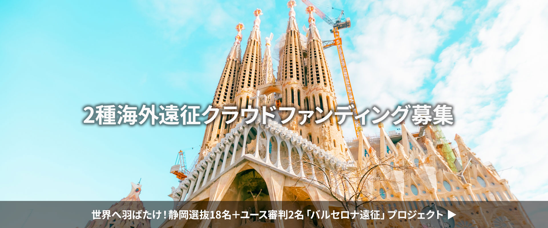 静岡サッカーの未来を担う選手・審判が、3月20日〜3月27日までバルセロナ遠征を行います。この遠征費用をサポートするため、クラウドファンディングを取り込むことにしました。ご支援いただける方は以下チラシURLから申込みをお願いいたします。