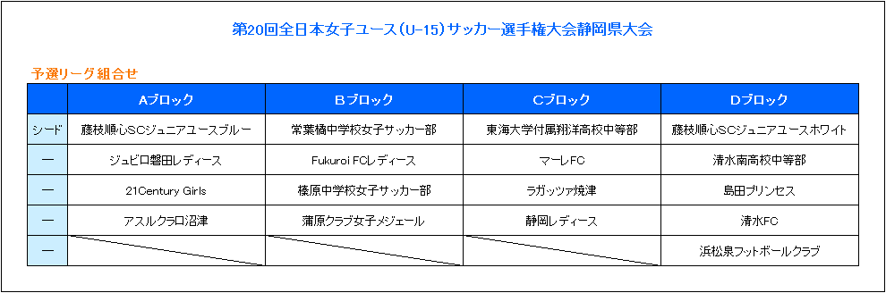 第20回全日本女子ユース(U-15)サッカー選手権大会静岡県大会 |