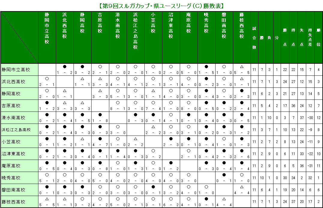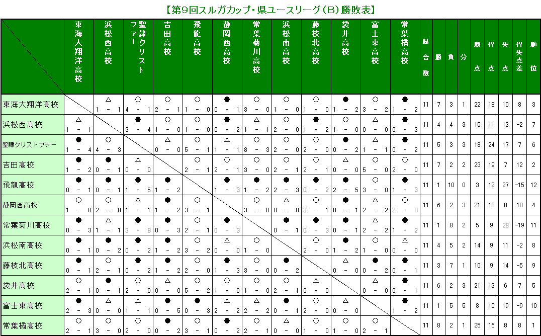 聖隷クリストファー、飛龍高校、吉田、藤枝北、浜松西、静岡西、東海大翔洋、常葉菊川、浜松南、袋井、富士東、常葉橘 |